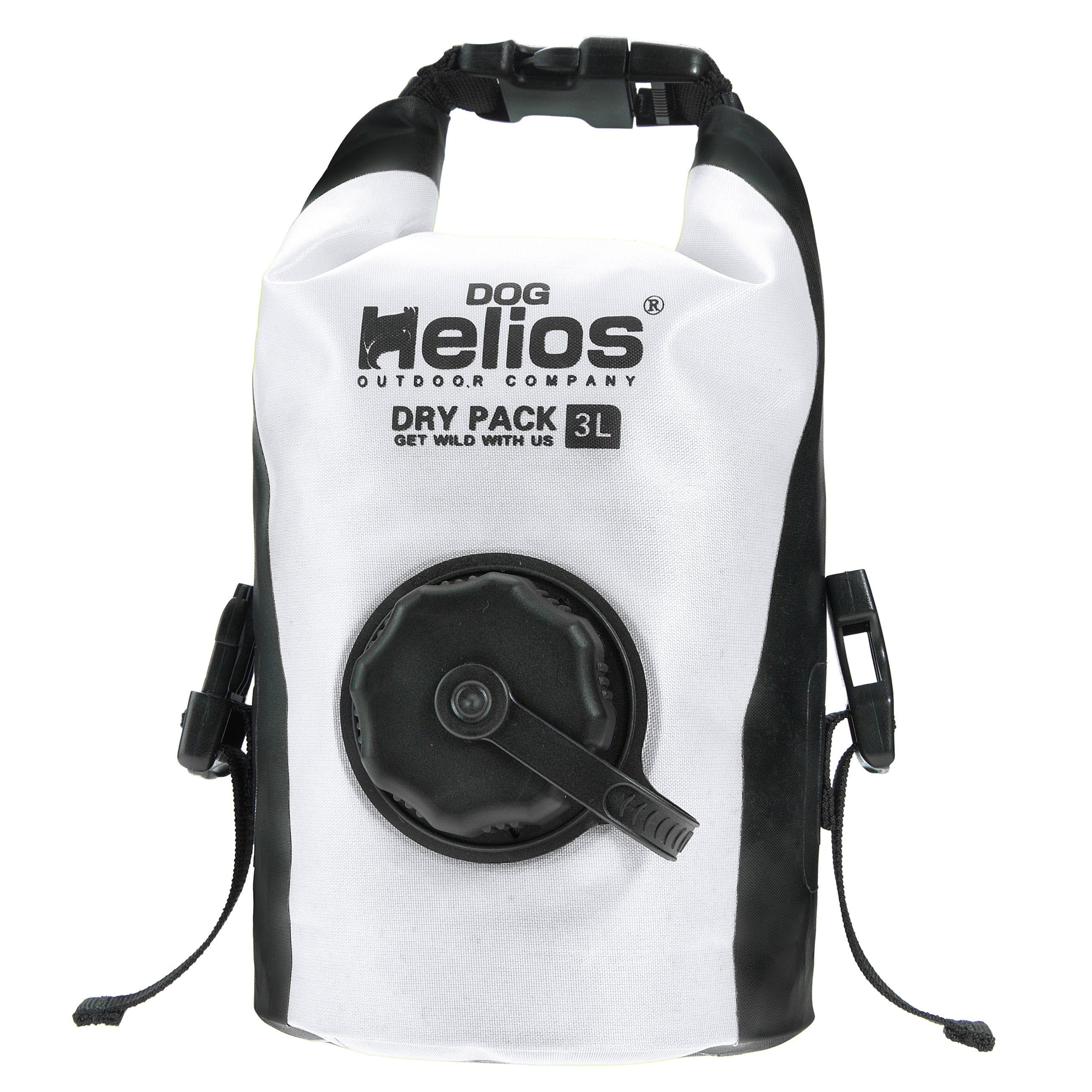The Dog Helios 'Grazer' Waterproof Outdoor Travel Dry Food Dispenser Bag is composed of a specially developed composite material that is completely Waterproof, Lightweight and Durable. Geared with a reinforced nylon carry handle and 3 Buckle Straps that both attaches to any Backpacks or Luggages and further secures and keeps Cat and Dog Food and Treats completely Dry. The top of the Travel Grazer Food and Treat Dispenser rolls up for placement of consumables and rolls shut and Velcros into place preventing any food from spilling or exiting and further Buckles shut to preserve food freshness and food security. Features a waterproof Push and Twist dial opener for proper food dispensing while keeping food fresh and secure. Great when used during Hikes, Travels or while On-The-Go. Carries up to 3 Liters of food or treats. Available in Multiple Colors.